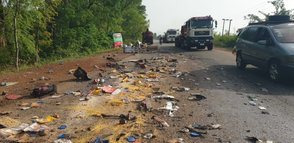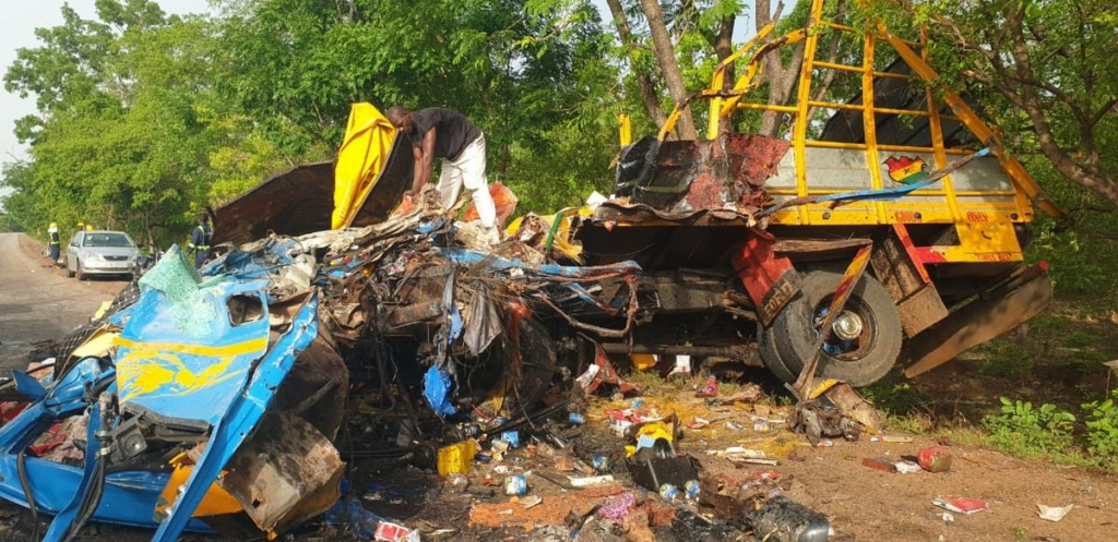 The quiet of the early morning was shattered at approximately 3:00 am on April 3. A passenger bus (registration GS-2564-20), bound for Widaana in the Pusiga District, collided with a cargo truck (registration GR-4958-K) carrying a load of tomatoes toward Kumasi Suronuase, a small town in the Kintampo North municipality.