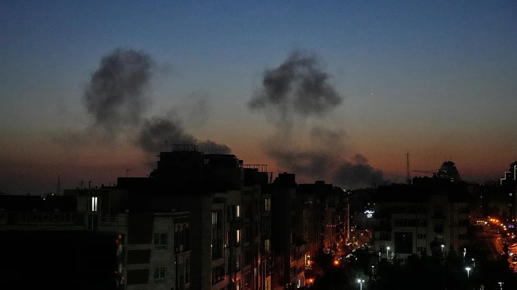 Video showed explosions flashing and smoke rising over western Tehran as Israel said it had begun a broad wave of strikes.