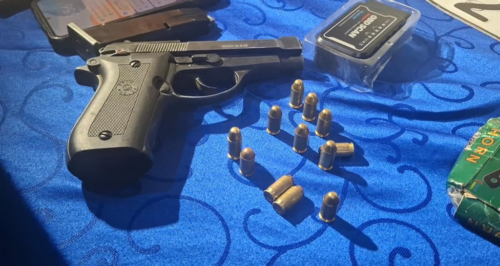 Exhibits retrieved from the suspects include a burnt locally-manufactured pistol, eight rounds of ammunition, a tracking detection device, forged vehicle documents, a Toyota Corolla S belonging to the deceased suspect, and several mobile phones.